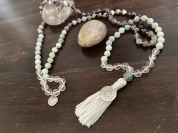 Sie wird verwendet, um während der Meditation oder beim Rezitieren von Mantras die Wiederholungen zu zählen – und gleichzeitig die Konzentration zu vertiefen. Sie besteht aus 108 Perlen und einer Quaste.